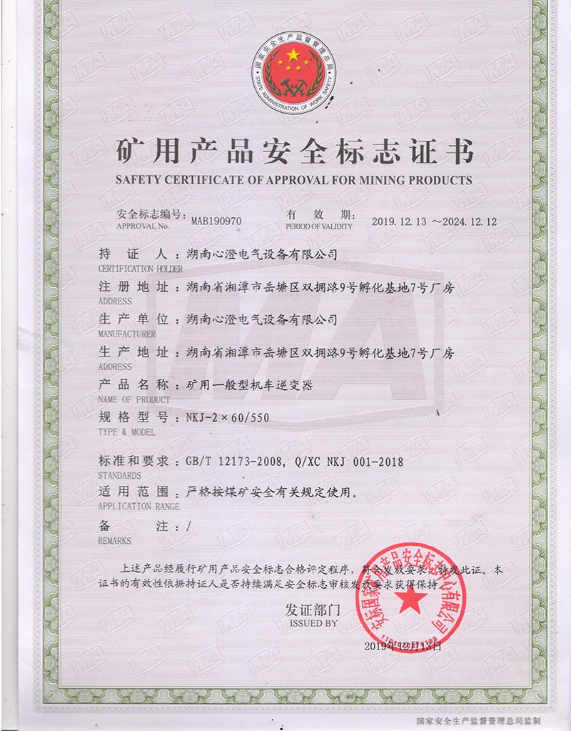 礦用一般型機(jī)車逆變器14T550V煤礦安標(biāo)證